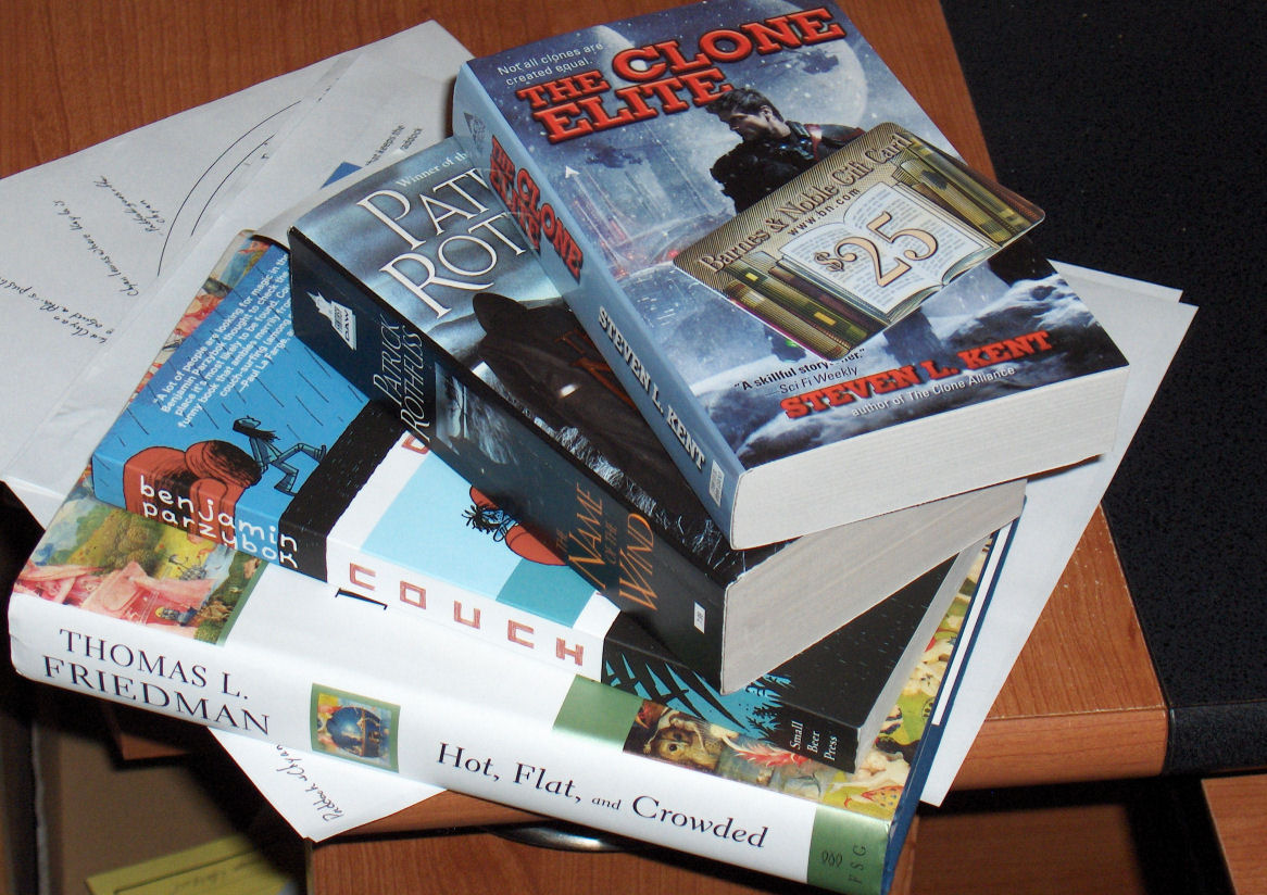 Of course, all of these have to wait until I’m finished with Patrick Rothfuss’ The Name of the Wind. Had a slow start, but I’m really getting into it now. Maybe I’ll try my hand at book reviews when I’m done with them.