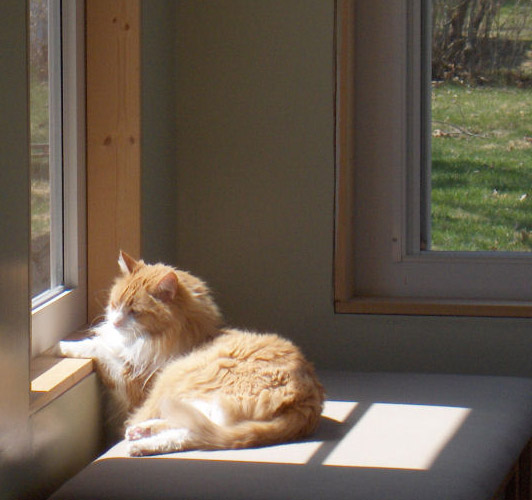 Well, first, the sun didn’t come up until sometime past six. Then it took a good two or three hours for the rays to get in here. And they kept moving! I mean, what’s up with that? I had to keep moving on the floor because those stupid sun rays moved all over!