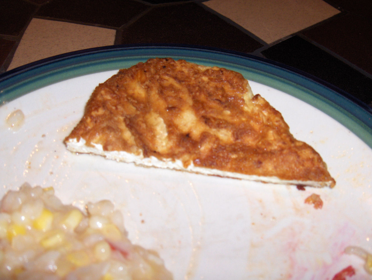 A Puffball Mushroom that we found on the farm. The thing was huge and according to a knowledgeable friend, this is a small specimen. Some of these things get to over a foot in diameter. Ours was about 8 inches. We cooked it up in some breadcrumbs, grated Parmesan cheese, and pan-fried it in butter. Tasted like French Toast.