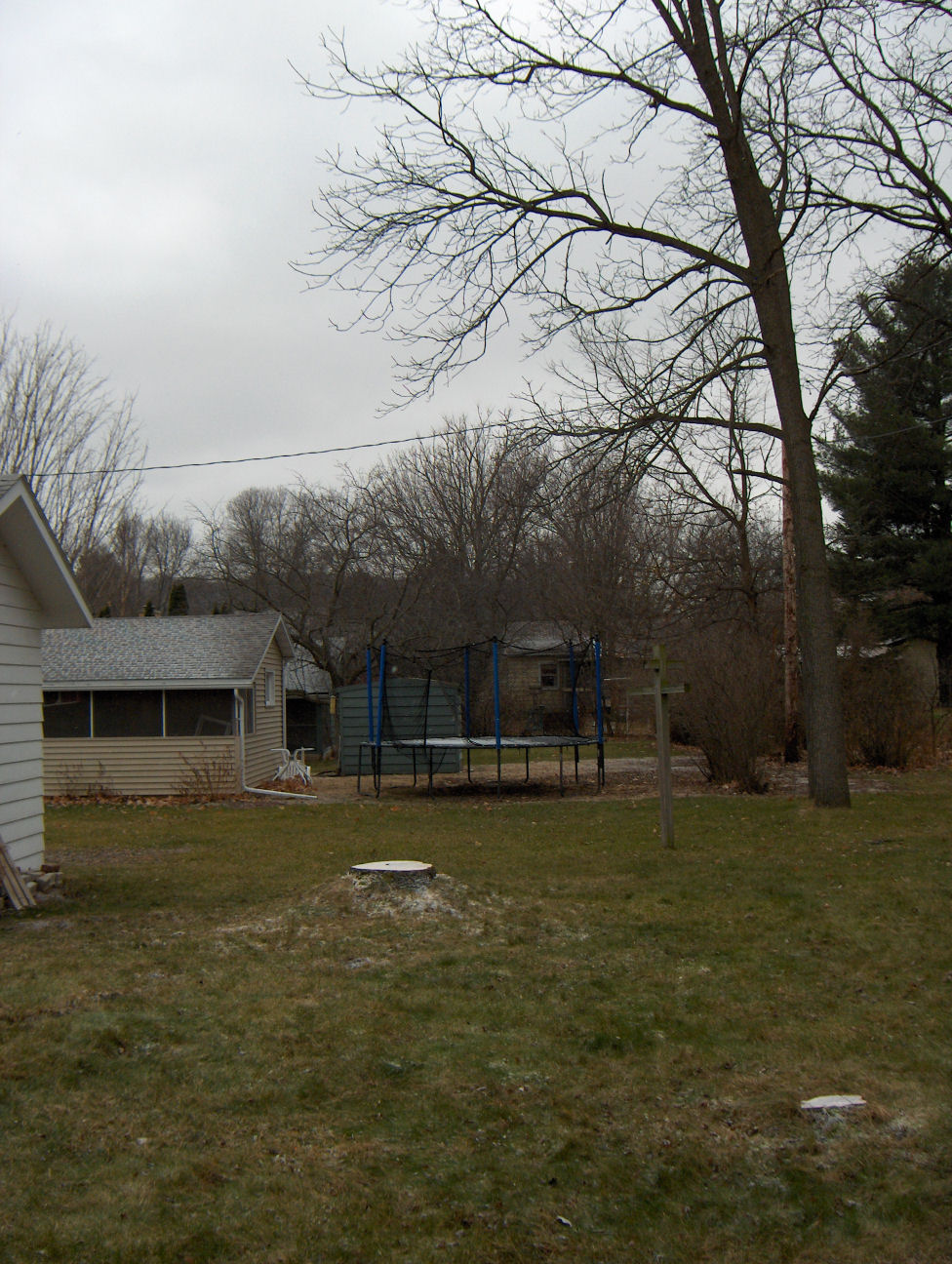 We didn’t really want it to come down but there wasn’t much of a choice. The tree had been struck with lightning and its roots exposed over time. The previous owner, rather than treat the problem, opted to mow over the roots which allowed disease and rot to set in. I’d guess maybe a quarter of the tree fell this past year with parts landing in the backyard (good) or on top of the garage (not so good).