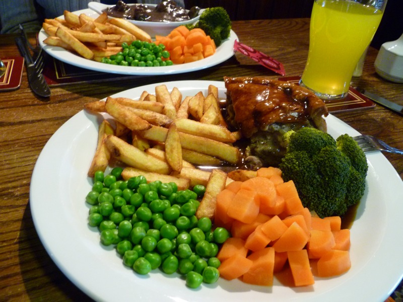 Dinner at the Milecastle Inn. Venison Casserole in Red Wine and Mushroom sauce for Steph, Wild Boar and Duckling Pie for me.
