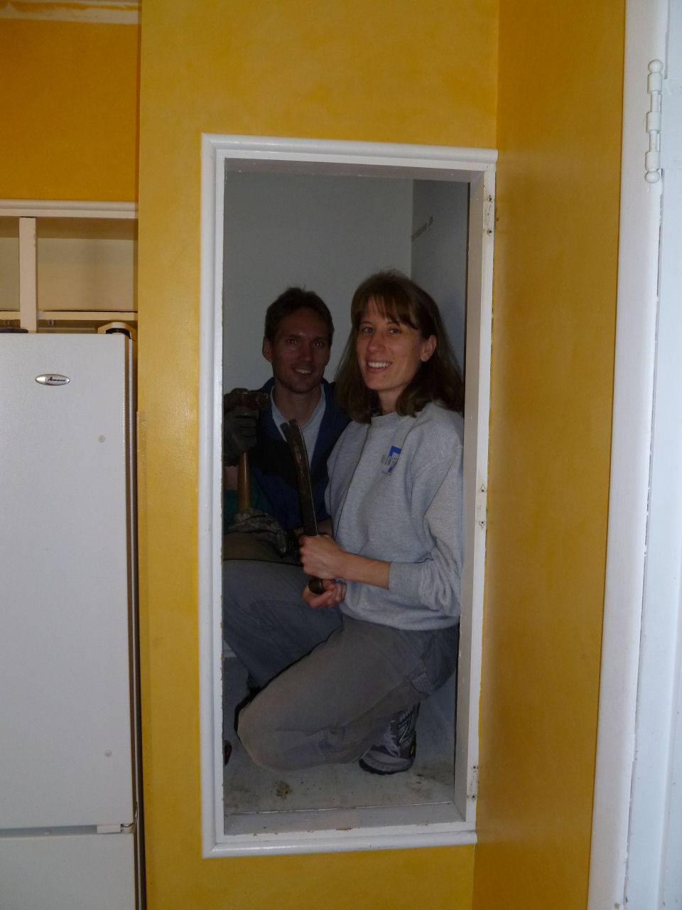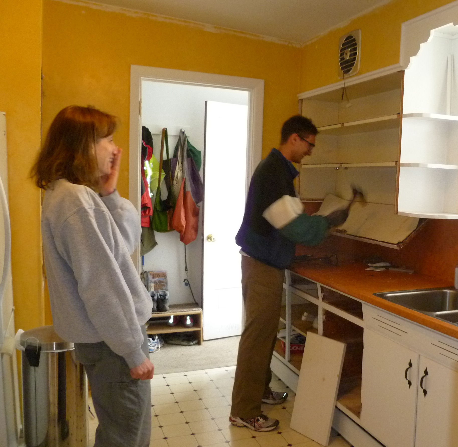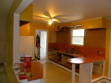 My original goal was to take out half the cabinets. Turns out that went a lot faster than I expected and we ended up removing all the cabinets and about half the doors in the house. Right now the counters are still in place (we need something to prepare meals on) but those will be removed on Sunday.