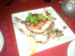 Ate some good food including a marvelous tapas place where I got to try squid and octopus. Tastes like chicken. Elsewhere food was okay though more than a bit overpriced. Coming home to our own homemade pizza was a really nice treat.