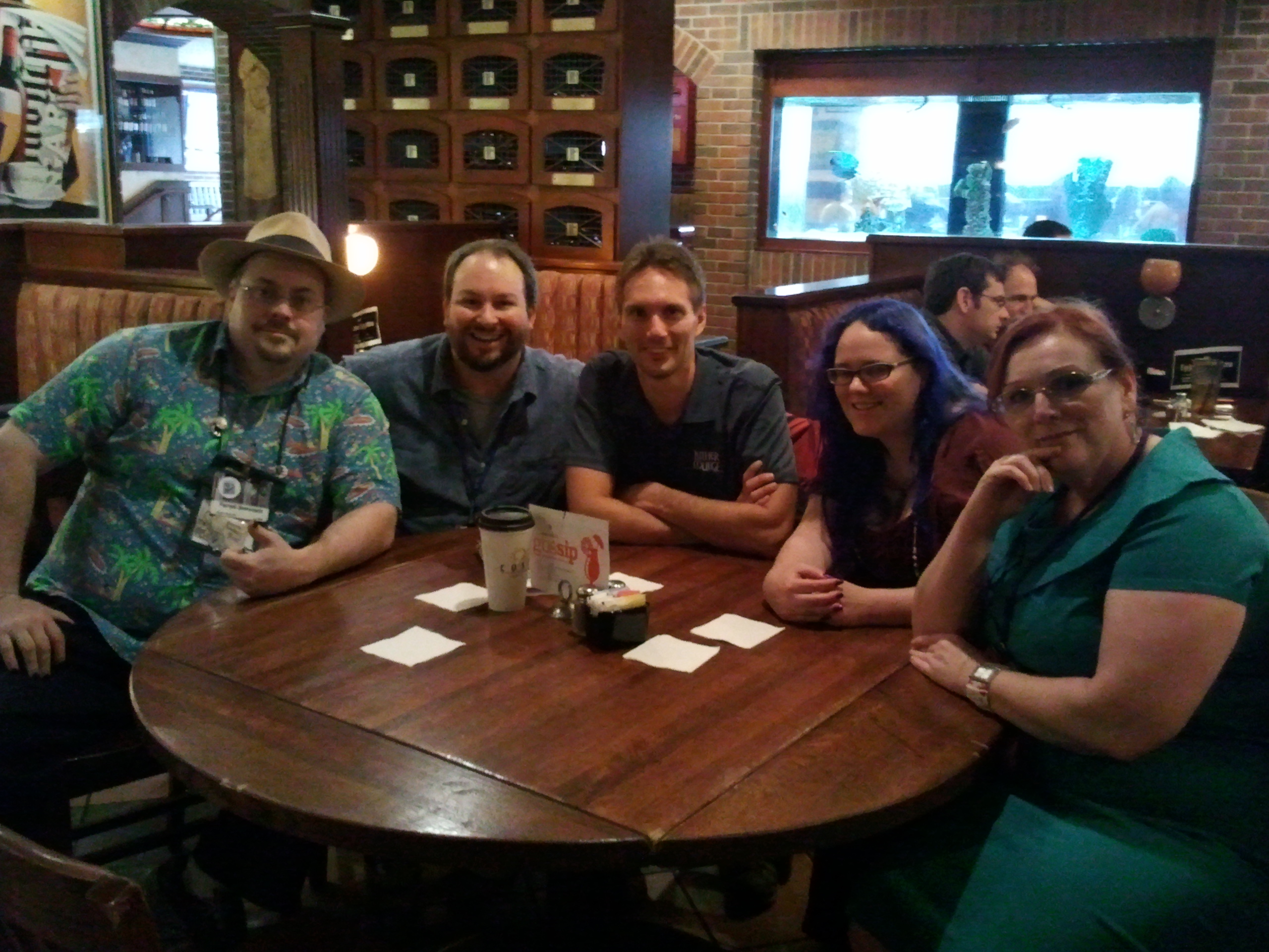 All over the place I was hanging out with people. I got lunch with a bunch of friends from Viable Paradise 13 such as Brent (with whom I roomed), Cath, Ferret, and Julia. Then there were all the other VP folks like Bart, Sarah, Fran, Kelly, and a few rookies going into this years class (sorry, I forgot names!).