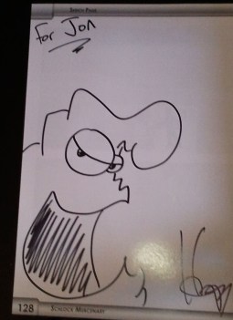 There were also author signings and I got books signed by Jim C. Hines, Patrick Rothfuss, and Robert J. Sawyer. I also picked up a gift for my brother and got him an signed drawing from one of his favorite artists. I’m sure I’ll send it to him at some point but I’d like to see how long I can drag the torture out.