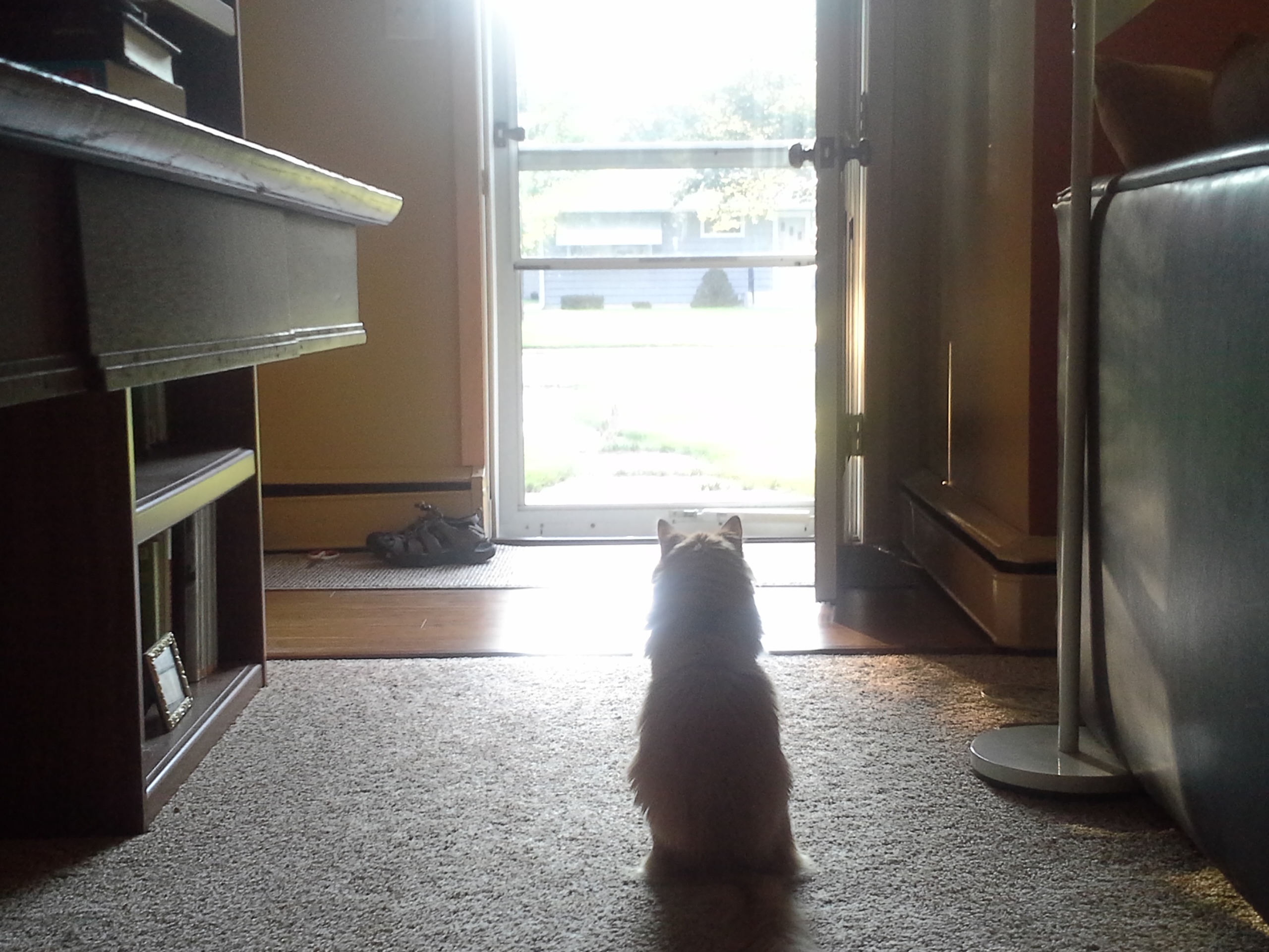 He came to us from the Humane Society in Cedar Rapids. At the time we were living in a small apartment and had this brilliant idea that a cat would be a great pet. Our first meeting of him was when he tried to escape the kitten room. He panted the entire way home as we drove in Steph’s old yellow Chrysler hatchback without air conditioning in the middle of summer.