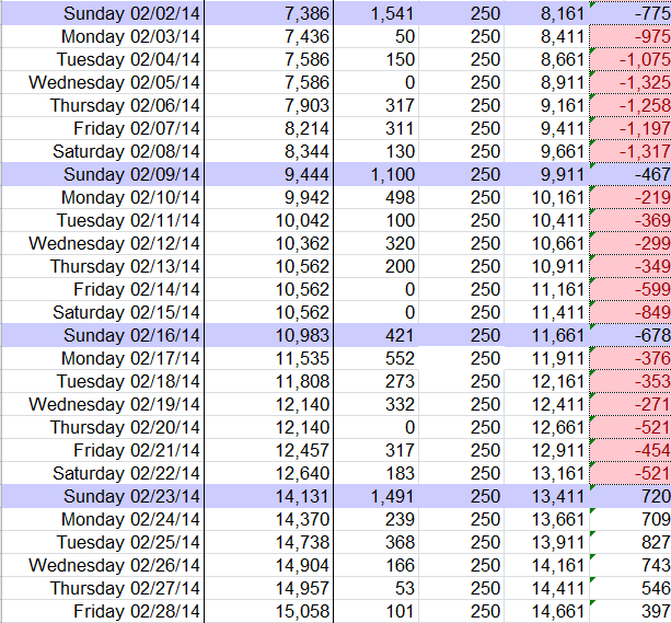 Toward the end of the month, I vanquished the red and started making some positive progress. A few good days helps quite a bit with that. Unfortunately most of that has been eaten up in March already but I hope to get a gap again.