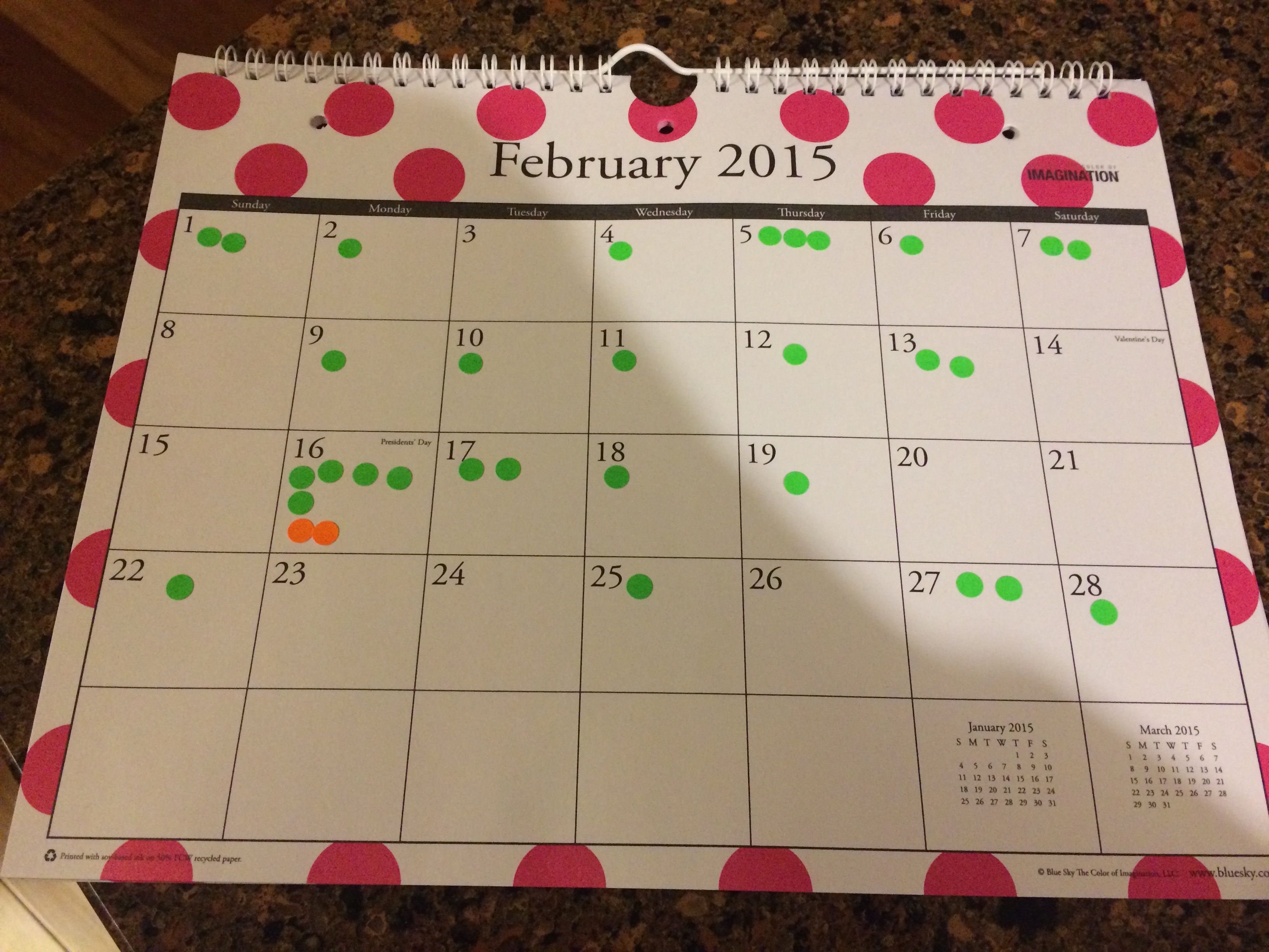 Again, the Green dots represent days that I’d written in increments of 250 words. Orange is video games (guess when I beat a game? Go on, guess!). The total for the month is roughly 7,500 words. That’s not bad considering that A) February is a short month and B) I was laid up by a nasty cold for a solid week. Total for the start of the year is almost 17,000 words which is alright in my book (both literally and figuratively).