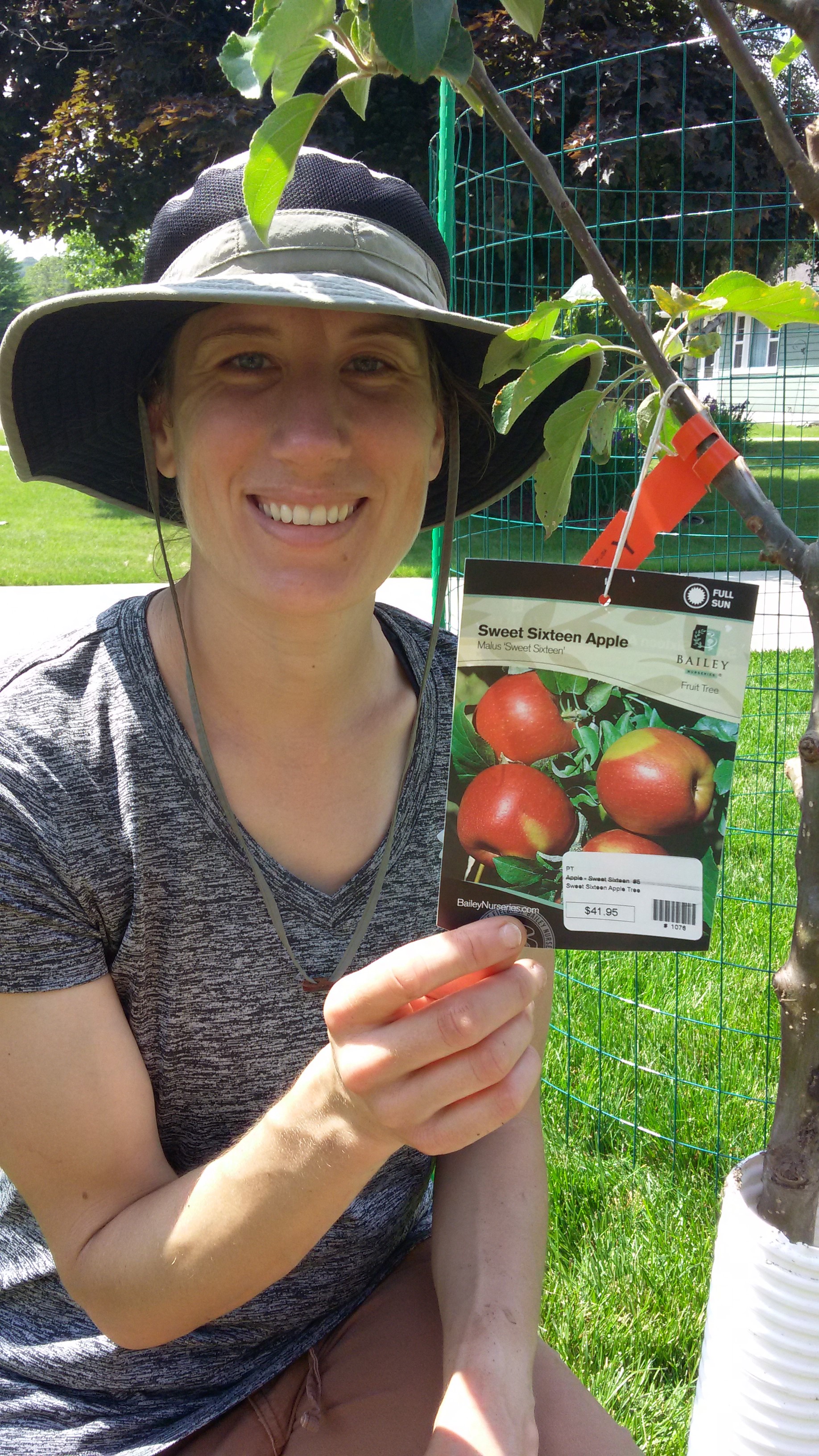 This year, we opted not to go anywhere and spent the week at home. This morning, we planted trees. Two apples and a cherry. And, with a bit of unintended humor, one of those apple trees?