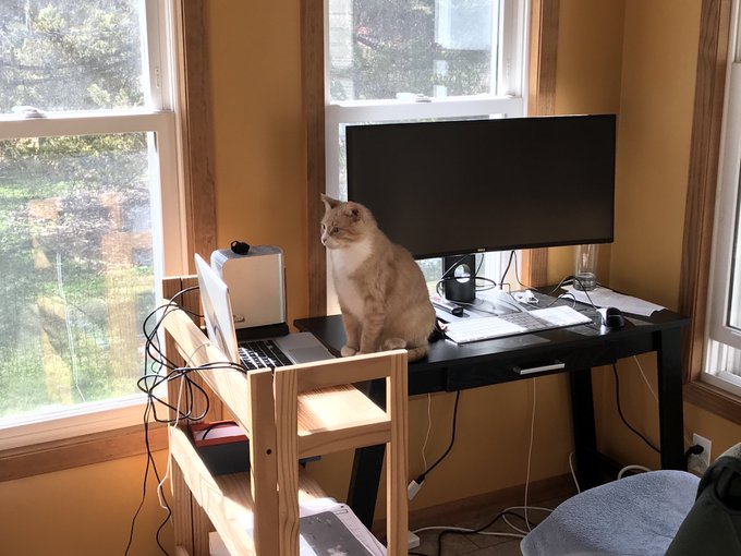On the plus side, my home office is now out on our four seasons porch. I’m surrounded by a ton of windows, plenty of sunlight, and lots of fresh air. It’s not bad all things considered. It’s taken me a bit of get used to the ‘at home’ discipline but I’m getting there. My at-home coworkers, however, can be a pain in the ass sometimes.