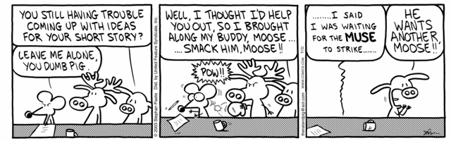 Okay, the idea isn’t entirely mine. They say ‘Steal from the best’ and in this case, I stole from Stephan Pastis, creator of the comic strip Pearls Before Swine. On July 11, 2003, he published the following strip that started it all :